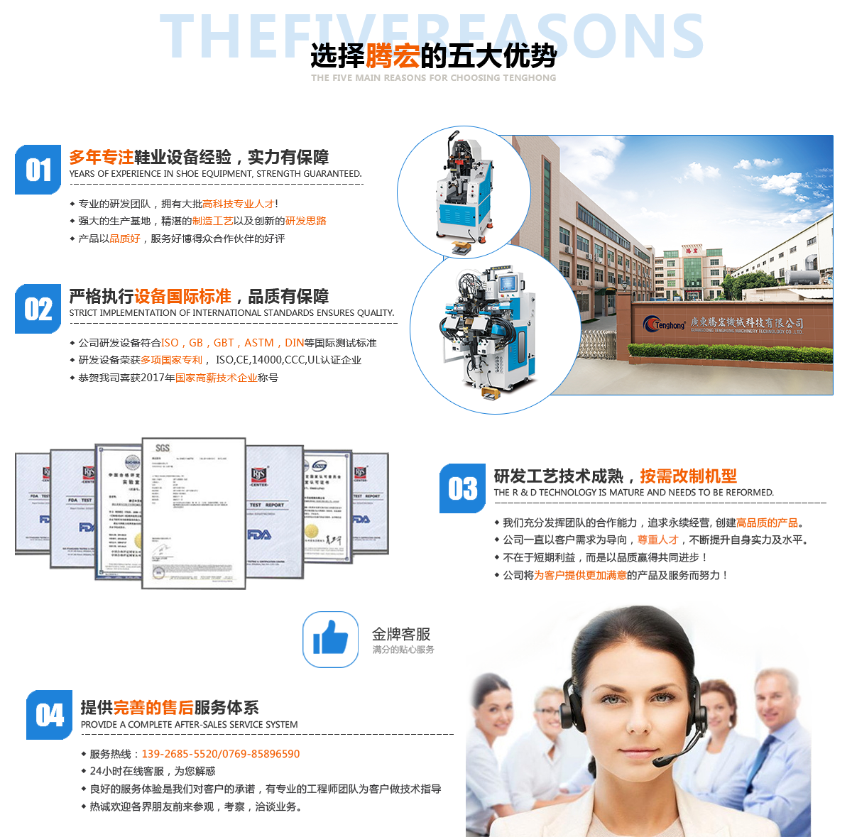 答 采用圓柱滑軌,上刀動作穩(wěn)定。 整型上壓刀采用二段式進行,鞋面定型機操作安全,鞋面中心定位準確。 …